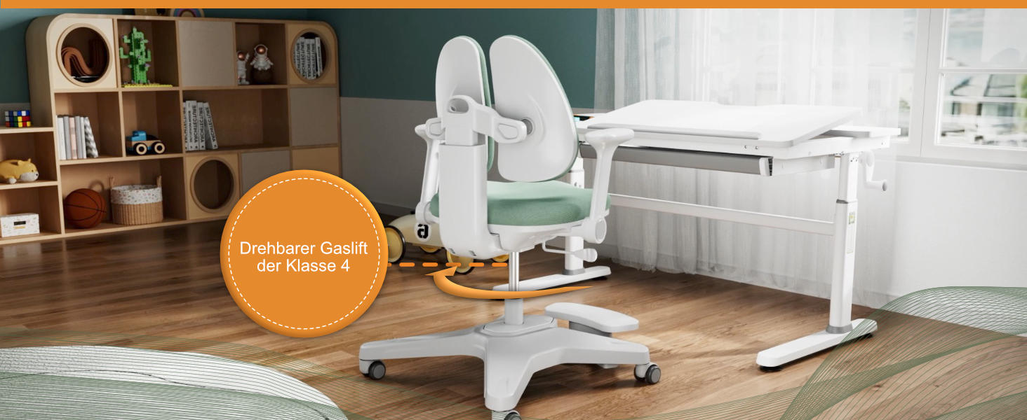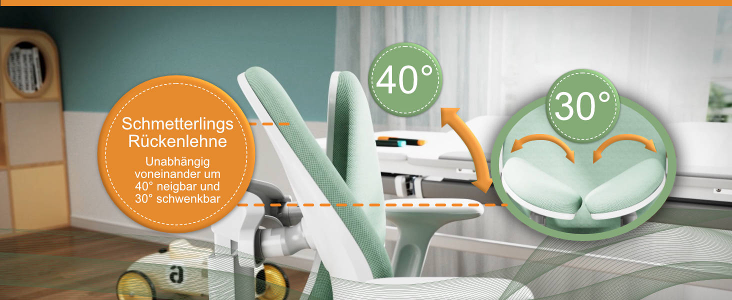 30° rotation & 40° tilt for a healthy sitting posture. - Height Adjustable. Backrest and seat can be individually adjusted, seat height up to 12 cm. 360° rotatable Class 4 gas lift – grows with your child.