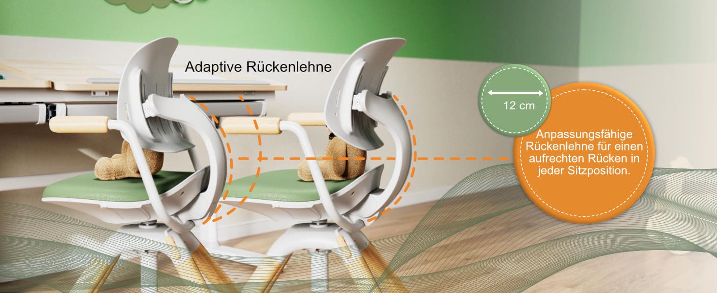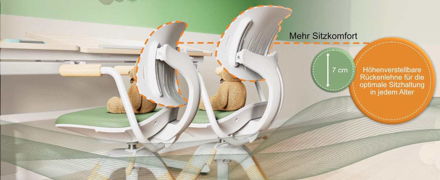 - Grows with the child and is individually adjustable. Seat height (100 mm), backrest (46 mm), and seat depth (120 mm) are flexibly adjustable. Ideal for children of all ages.