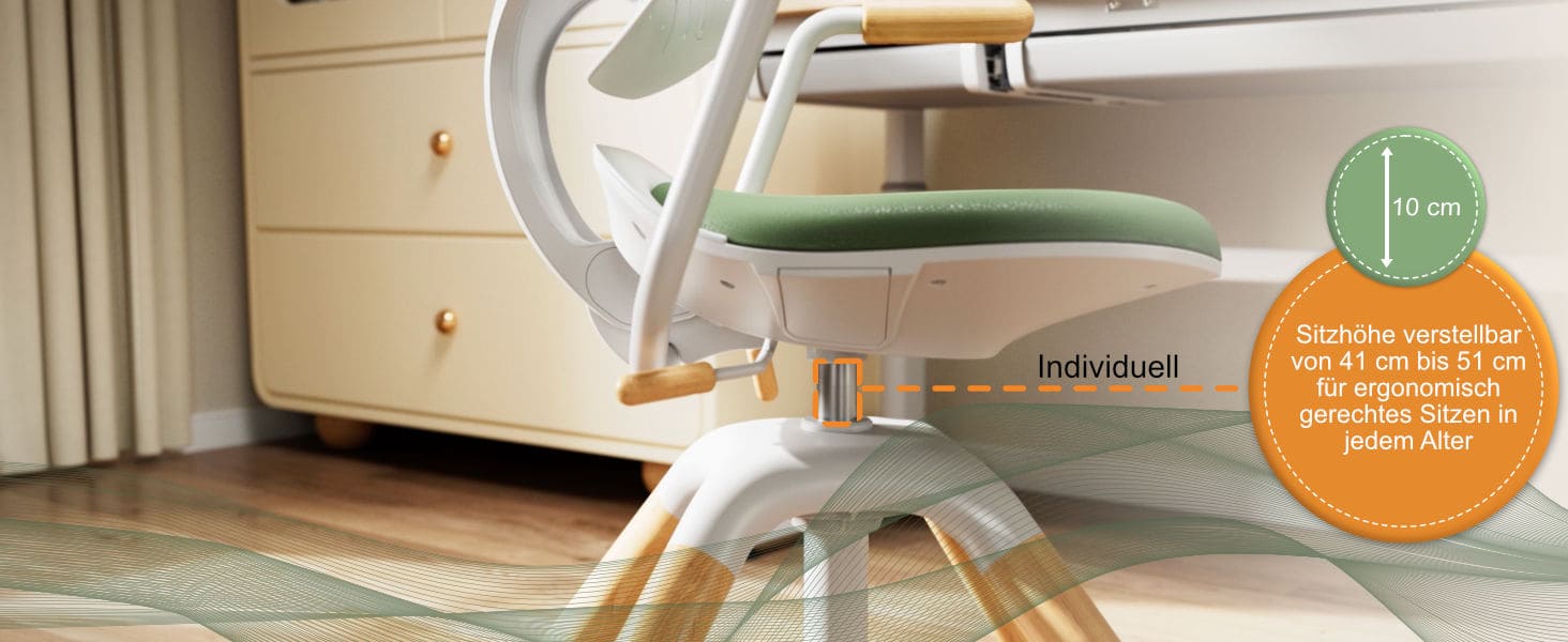 Ob Vorschule oder Grundschule – dieser Stuhl wächst mit. Eine langfristige Lösung, die sich den Veränderungen Ihres Kindes anpasst.